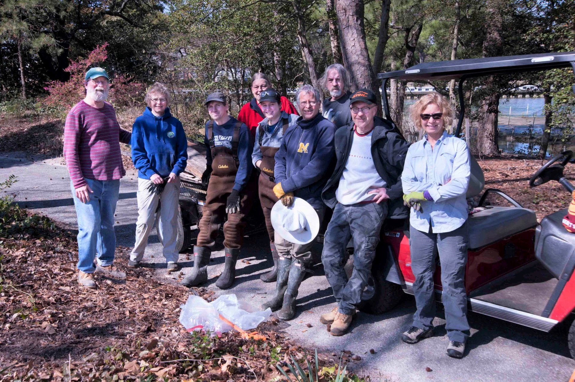 Over the last 12 years, the Living Shoreline on both the east and west sides of the Hermitage property have undergone extensive restoration, much of it with help from volunteers including Norfolk Master Gardeners. A concept that MG Water Stewards have taken to heart is that true stewardship requires both monitoring and maintenance of our wetlands, shorelines, and waterways. In that spirit, several of our Water Stewards turned out at the Hermitage for the first of monthly planned shoreline cleanups with Phil Riske, Curator of Gardens + Grounds.