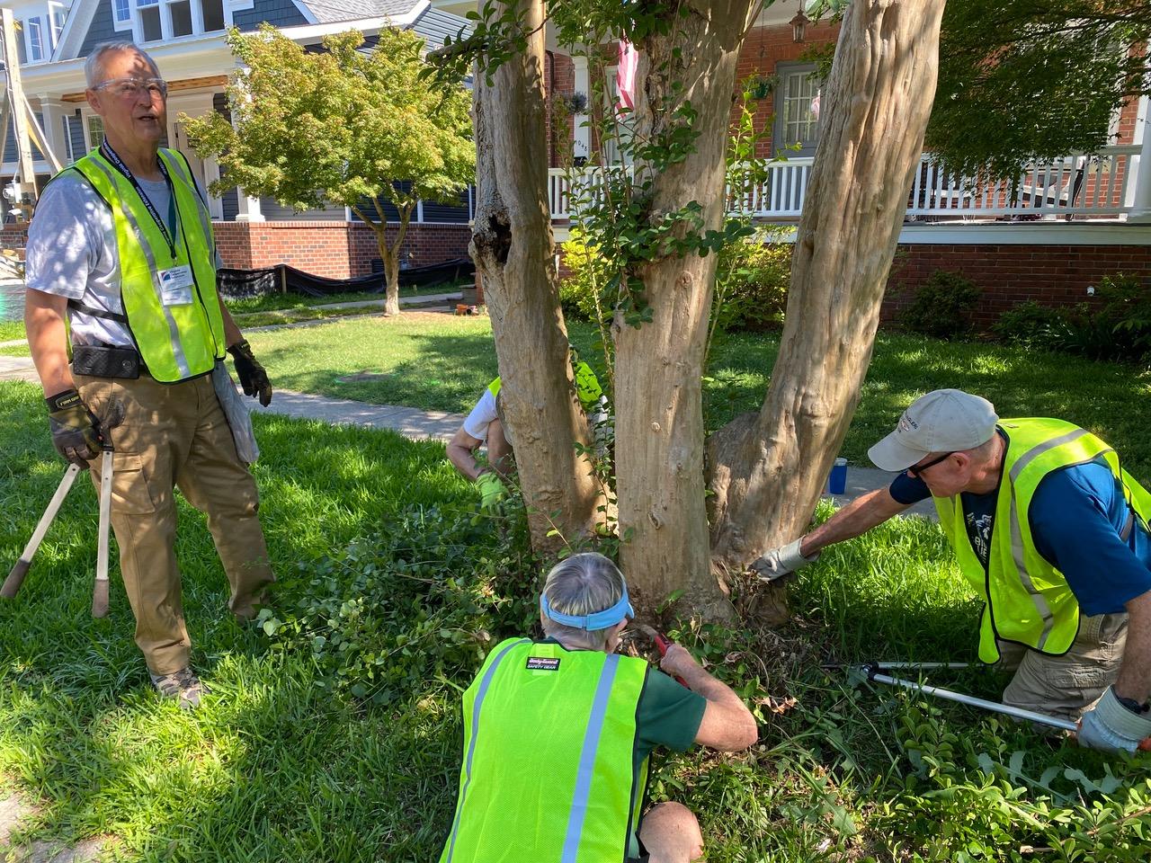 Pruning volunteers like K.T. Vick, who has two young two crape myrtles in front of his home, liked the “sense of community and learning how to keep our neighborhood’s precious crape myrtles in good shape.”