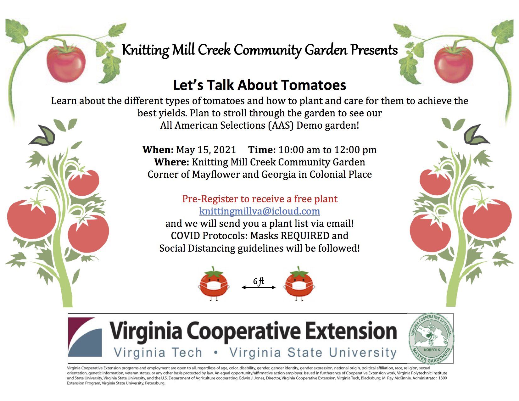 On May 15th, she will give a short talk about tomatoes focusing on the different varieties and how best to plant them – basically the who, what, when, where, how and even why one would choose certain varieties for their own garden.