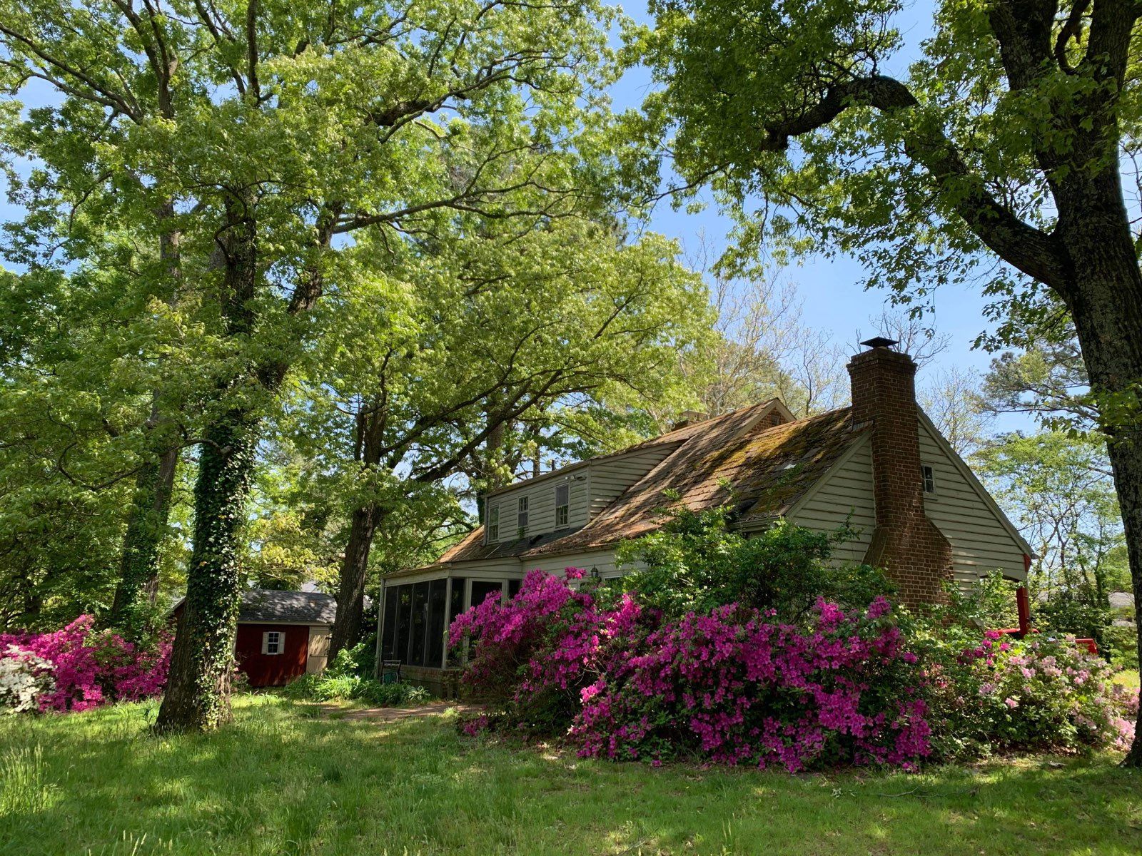 The tree canopy on the grounds contains mimosas, sycamores, mulberries, loblolly pines, cedars, and oh the oaks! There are live oaks, water oaks, pin oaks and the largest willow oak I have ever seen. The camellias and azaleas are old and fairly healthy with forsythias and hollies along the driveway. There is a nice buffer filled with grasses between the lawn and the water. We walked the perimeter of the property two times just trying to see everything that was there and still I’m sure we missed a lot.