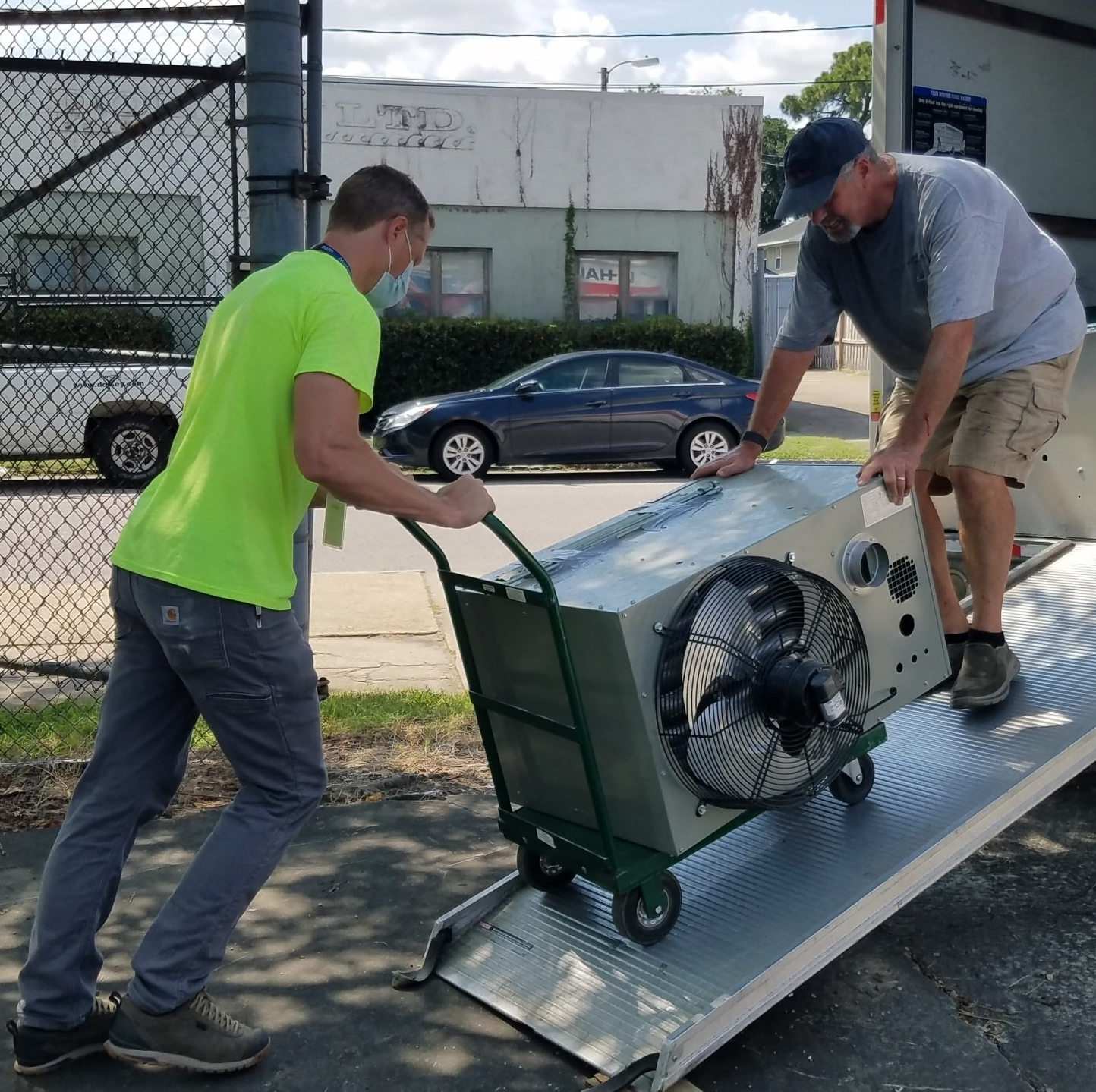 Bob, Mitch, and Larry did some preliminary work on Thursday, disconnecting the heating unit, blower fans, fan vents, fans, and the huge front door section.